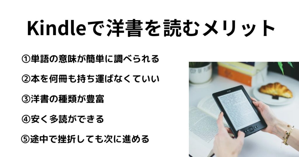 Kindleで電子書籍として洋書を読むのは、紙の本で読むのに比べて英語学習において優れた点が多くあります。