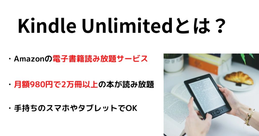Kindle Unlimitedとは、Amazonの電子書籍の読み放題サービスで、月額980円で200万冊以上の本が読み放題になるコスパ最強のサービスです。